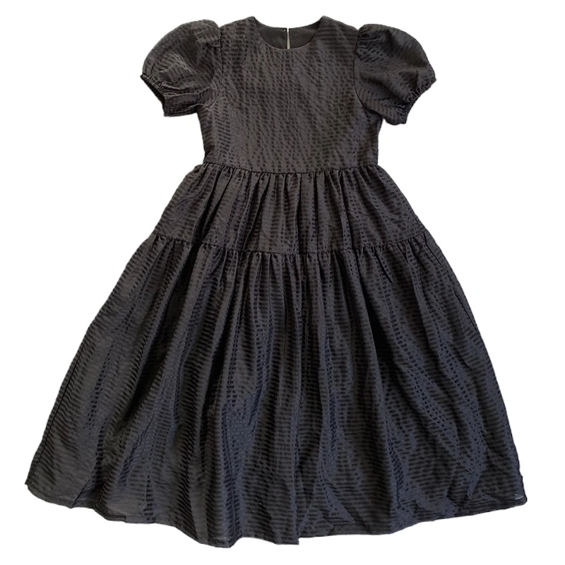 Meme Apparel Textured Bodice Ruffle Trim Dress Little Women Too