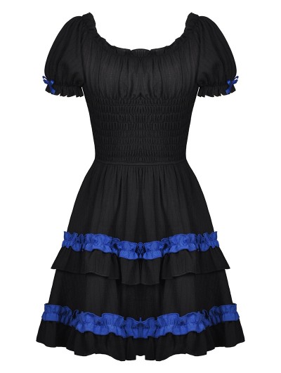 Dark In Love Black And Blue Cute Gothic Frilly Short Puff Sleeve Doll Dress Darkincloset Com